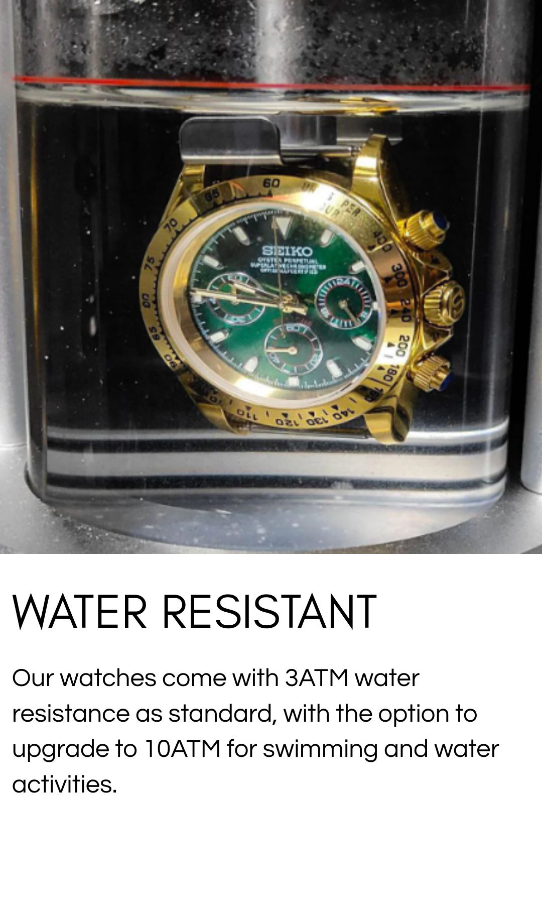 All watches are custom-built using third-party aftermarket parts combined with original movements.