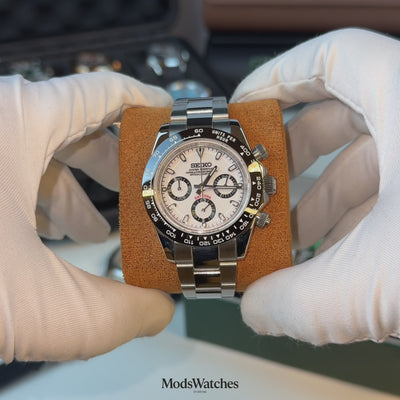 A Seiko Mod is a special watch hand-assembled from a prestigious Seiko automatic or hybrid movement, combined with high-quality aftermarket parts, usually made of 904L stainless steel.